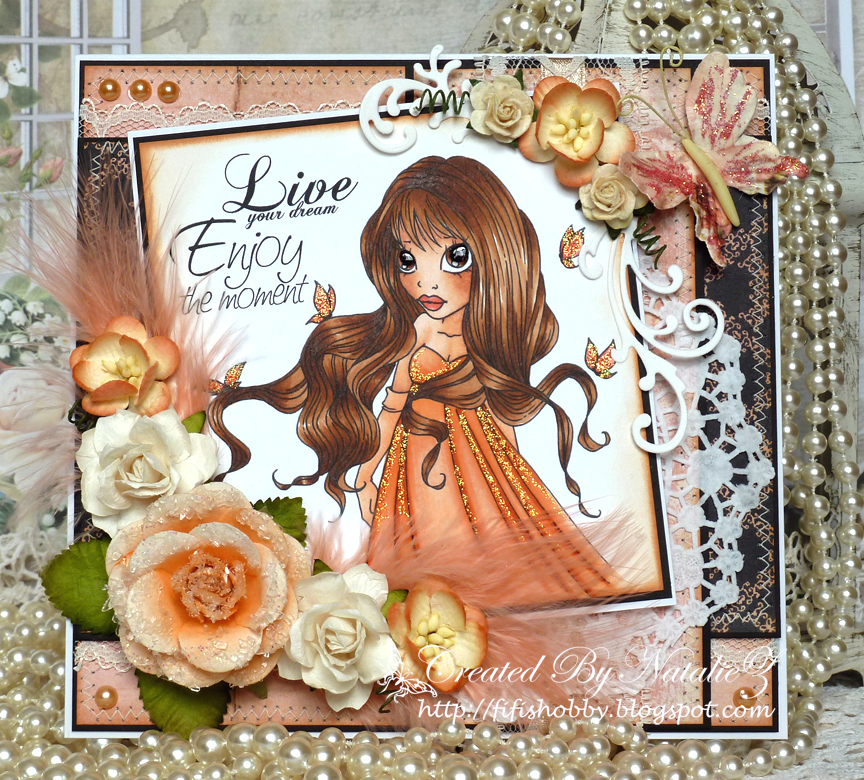 Для своей открытки я подобрала девушку от Saturated Canary "Cerridwen" она чем-то напоминает мне Аню. Разрисовывала я её копиками, и получила от этого процесса уйма удовольствия.....